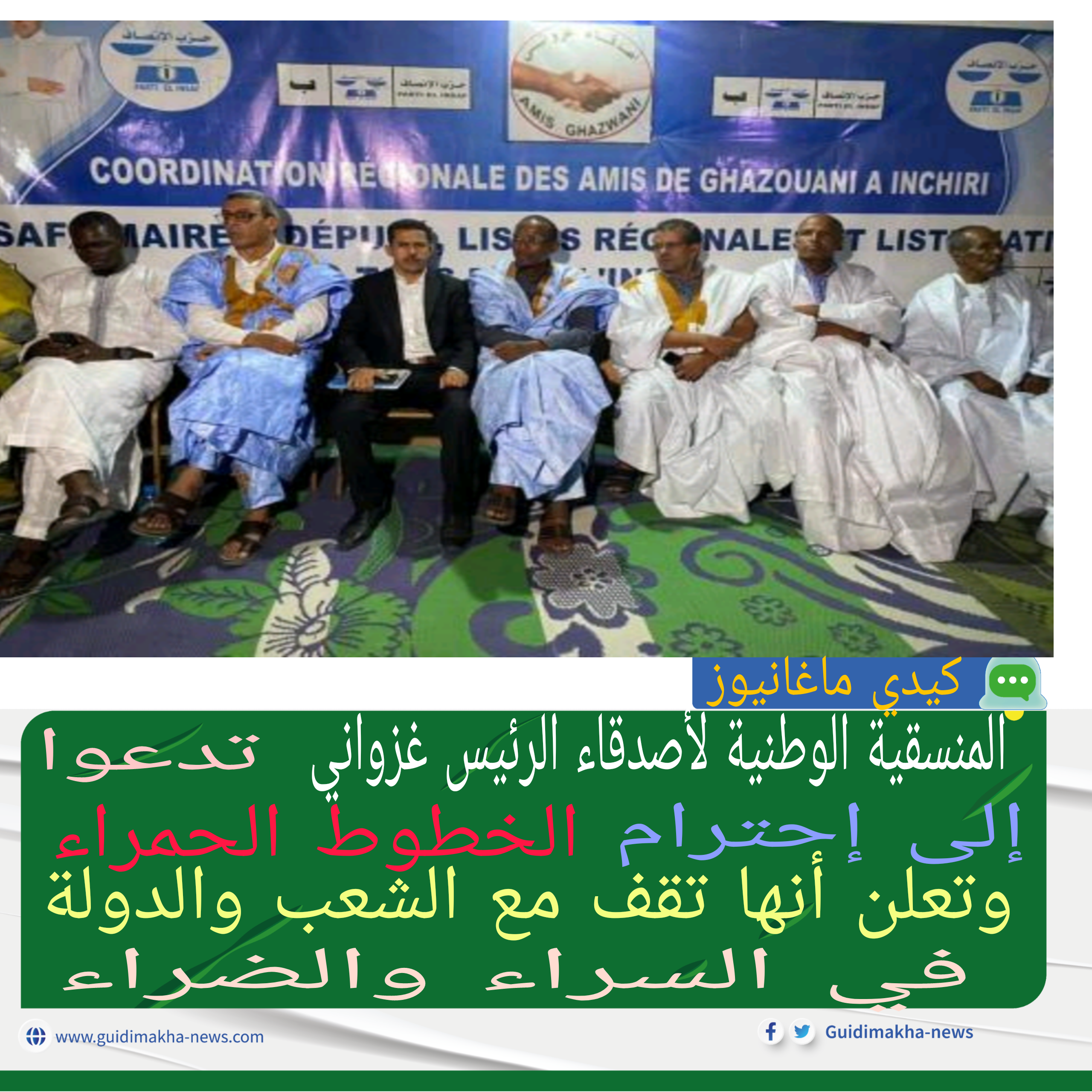 المنسقية الوطنية لأصدقا غزواني تدعواإلى إحترام الخطوط الحمراء وتعلن أنها تقف مع الشعب والدولة في السراء والضراء