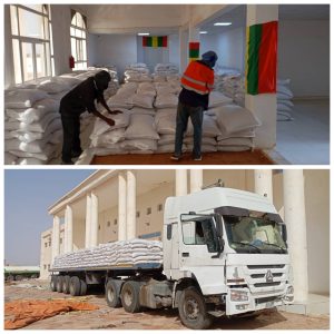 بمقر جهة اينشيري، واستجابة لطلب رئيسها السيد الشيخ ماء العينين ولد أعبيدي ولد الغرابي تم قبل قليل تسليم الجهة ل40 طنا من القمح مقدمة من طرف شركة مناجم النحاس الموريتانية (MCM ) لصالح المنمين بالولاية .