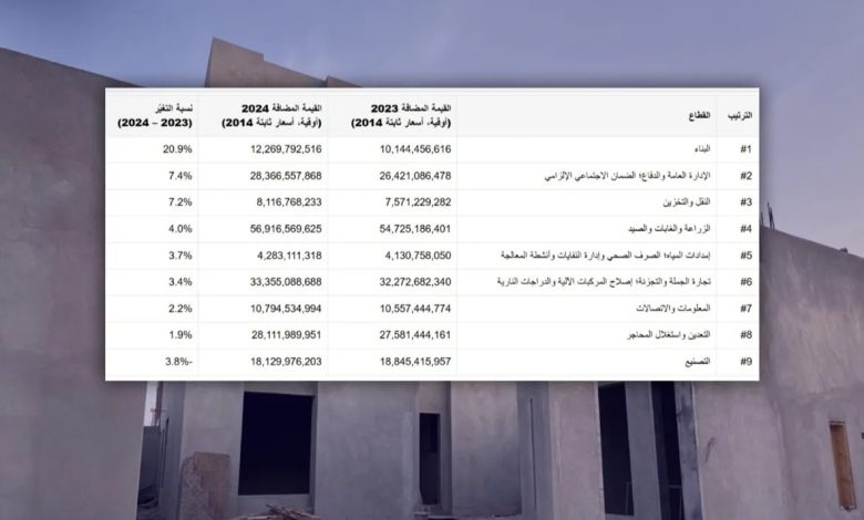 فيما كان قطاع التصنيع القطاعَ الوحيد في مجموعة البيانات الذي سجّل انكماشاً على أساس سنوي، إذ تراجع بنسبة 3.8% بين عامَي 2023 و2024. وبلغ متوسط نسبة التغيّر عبر القطاعات التسعة المصنّفة 5.2%.
