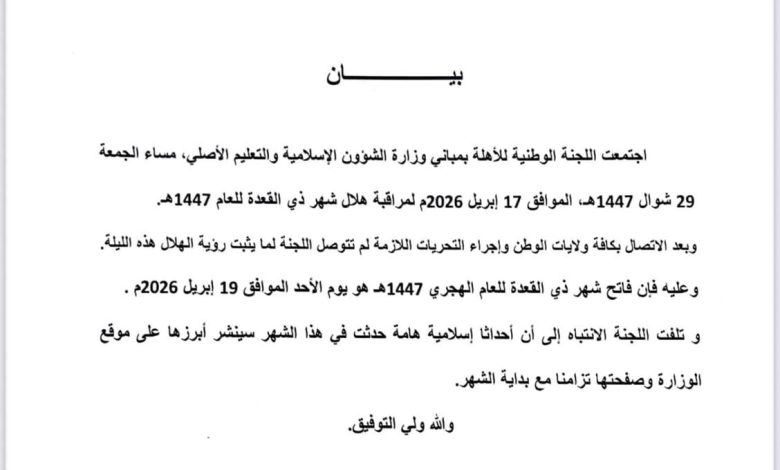 لجنة الأهلة تعلن غدا الأحد فاتح شهر ذي القعدة للعام 1447هـ