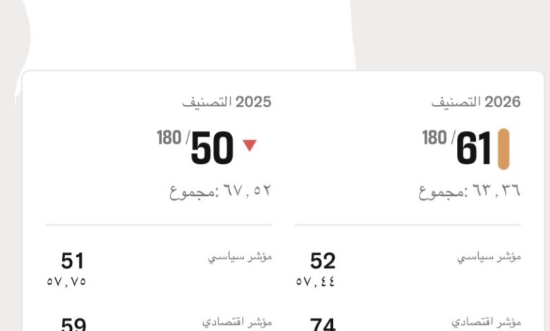 تراجعت موريتانيا 11 مرتبة في تصنيف 2026 لحرية الصحافة، الصادر اليوم عن منظمة “مراسلون بلا حدود”، لتحل في المركز الـ61 عالميا بعد أن كانت تحتل المرتبة 50 في تصنيف السنة الماضية.